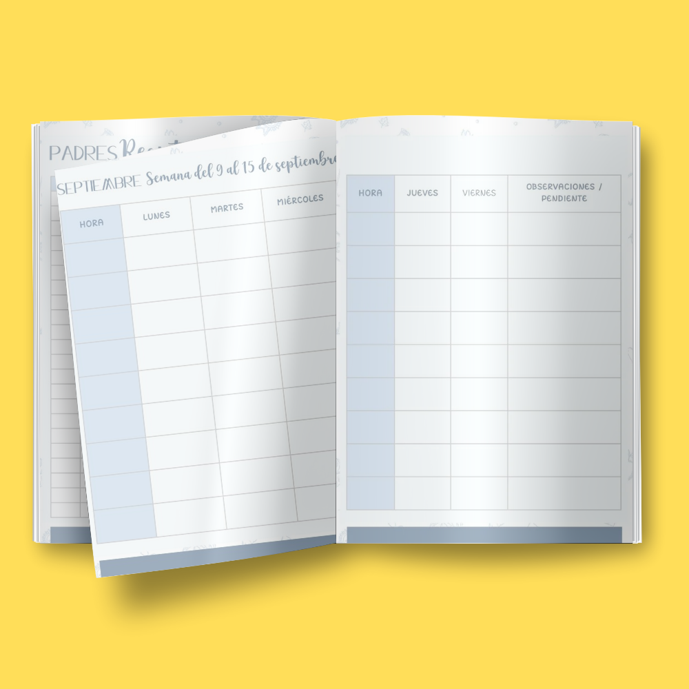 Nueva libreta para maestros de educación primaria, infantil o secundaria con planificador semanal 2 hojas. Orientación horizontal.